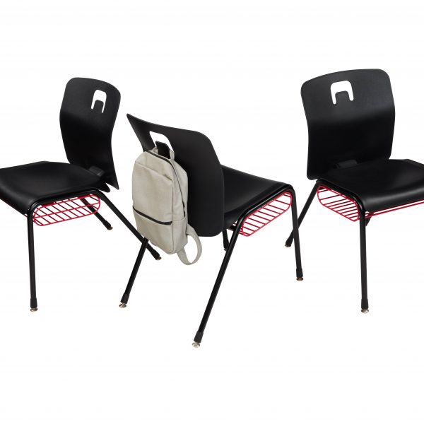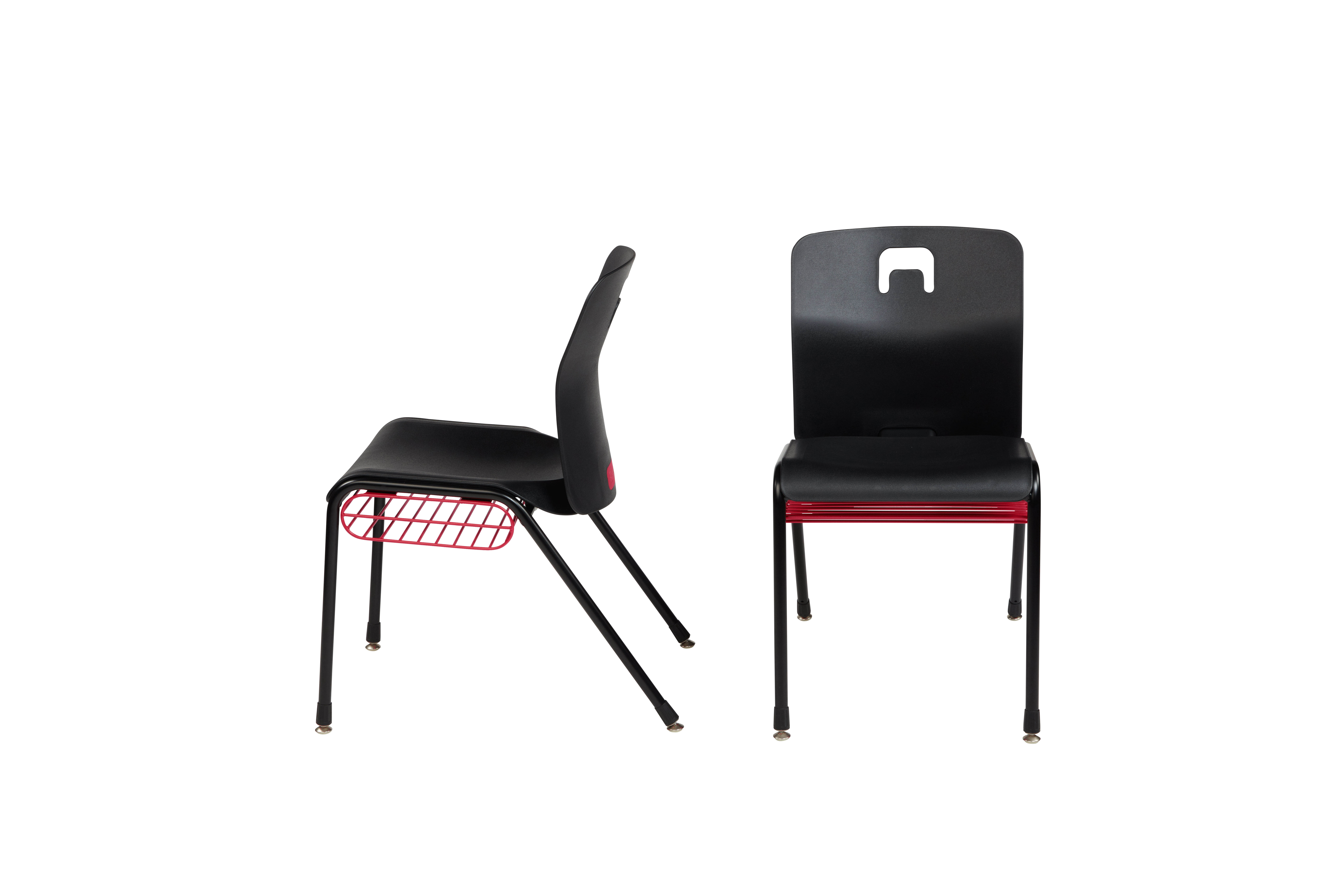 Frame: Powder coated steel frame and wire bookbasket. Bookbasket chairs contain rubber bumpers for enhanced stacking.