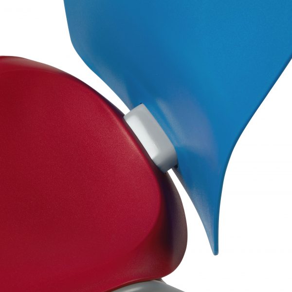Stacks with a bookbasket, up to 4 hairs high; with rubber bumpers for protection.