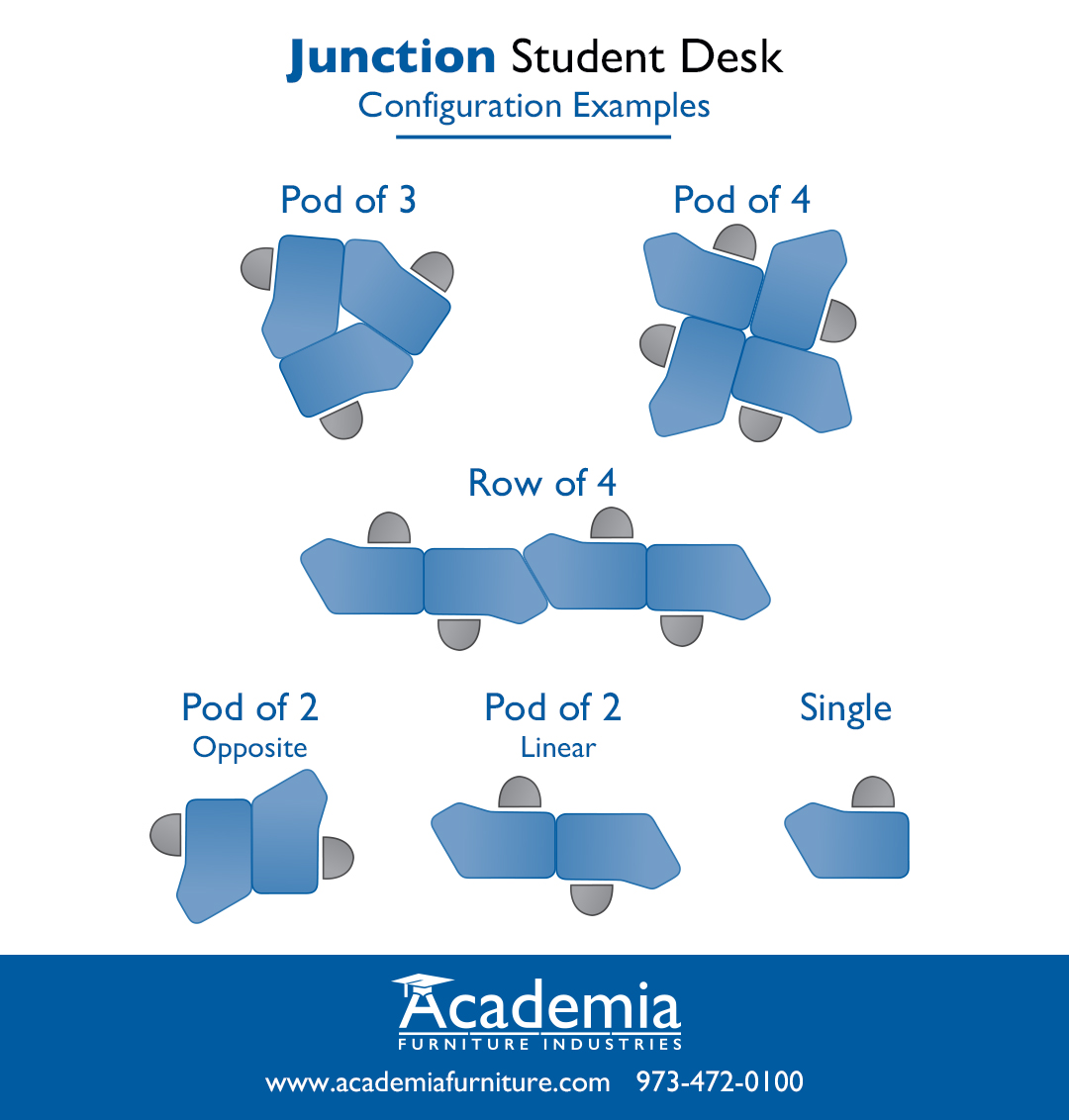 The Junction Desk® is the ultimate pod desk, created with the idea of maximizing work surface while minimizing floor space. The total work surface is 643 square inches. The desk intuitively pods into groups of 3 or 4, as well as having the ability to stand alone, for both collaborative group work as well as individual work. With options of casters or glides, multiple desktop color options available, and the ability to be height adjustable from K-12, the Junction Desk® is flexible and versatile.