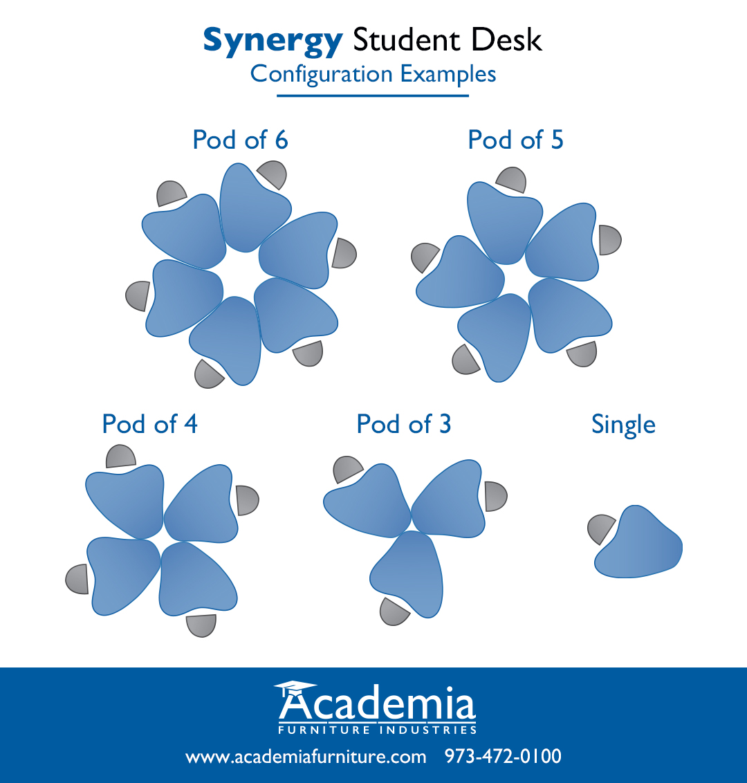 More students does not equal more space. The Synergy's unique shape maximizes classroom space. A pod of 6 only uses 44 sq. ft of classroom space.