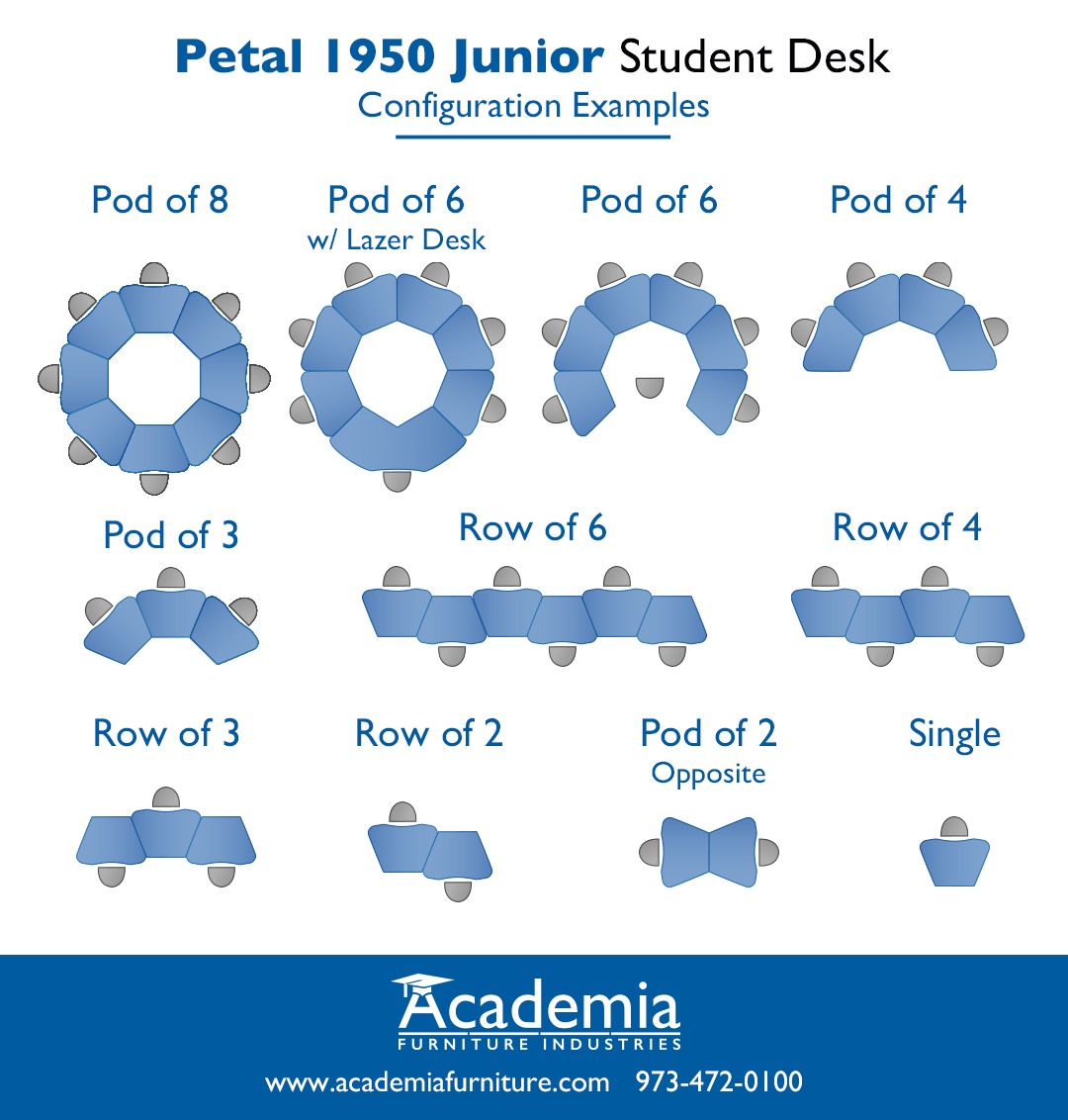 Striking and strong, Petal Series pairs personal space with collaborative learning. Two desktop sizes available, perfect for any room size. Combine with Petal Jr. with the Lazer Teacher Desk for instructional help in each Pod. Options of Casters or Glides; Height Adjustable; Mesh book-box and backpack hook.
